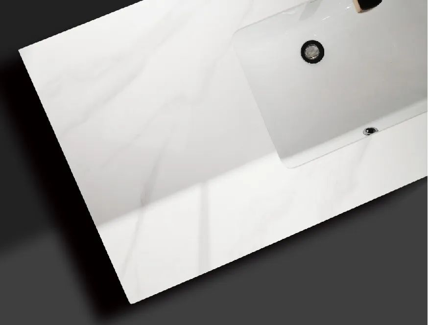 雪山石巖板臺面繼承大理石的硬度耐高溫時尚紋理的同時,又摒棄了大理石的厚重,經(jīng)過1280℃高溫燒制,密度高,抗污抗菌效果好,污漬潑灑到臺面之后即可用抹布簡單擦拭干凈。內(nèi)嵌式陶瓷洗手盆不容易濺水,邊緣沒有凸起,臺面積水也可直接掃到盆內(nèi)清潔打掃很方便。