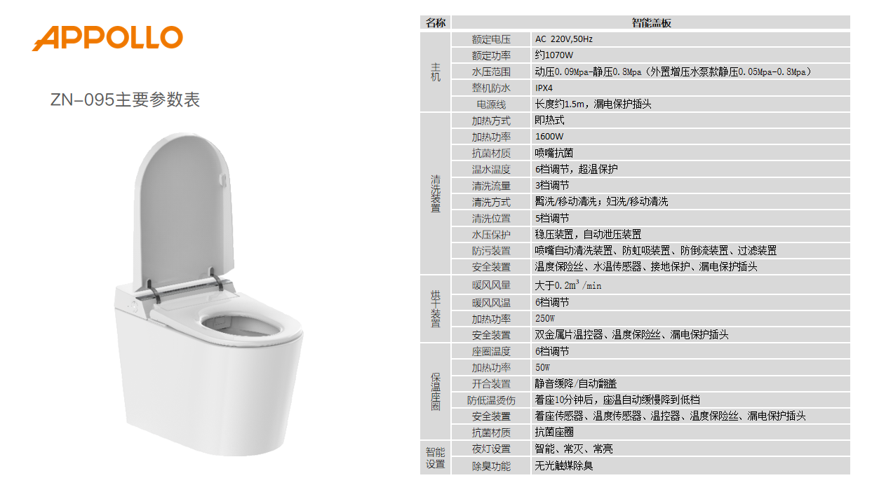 智能感應(yīng):ZN-095智能馬桶還具備智能感應(yīng)功能,能夠自動(dòng)感知人體的靠近和離開(kāi),從而自動(dòng)靜音開(kāi)關(guān)蓋板、座圈等,提供更加智能化的使用體驗(yàn)。
