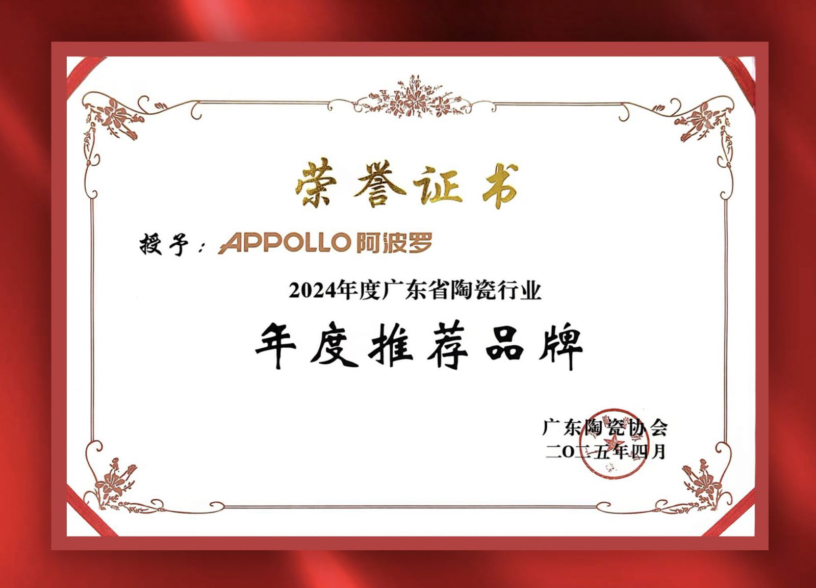 2025年4月18日,廣東省陶瓷行業(yè)年會于廣東(潭洲)國際會展中心召開。樂發(fā)在年度盛典中榮獲“年度推薦品牌”。這一獎項不僅是對樂發(fā)品牌實力與市場口碑的認(rèn)可,更是標(biāo)志著樂發(fā)在品質(zhì)、創(chuàng)新與服務(wù)領(lǐng)域均達(dá)到行業(yè)領(lǐng)先水平。